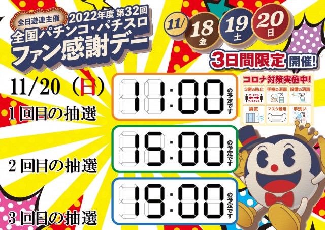 本日、ファン感謝デー最終日の抽選時間のお知らせです。🌝