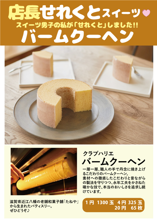 3/16(水)スイーツ『バームクーヘン』入荷いたしました。