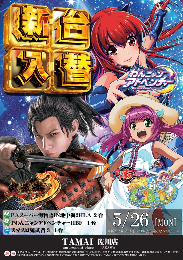 5/26(月)1P機3台、20C機1台新台導入予定!