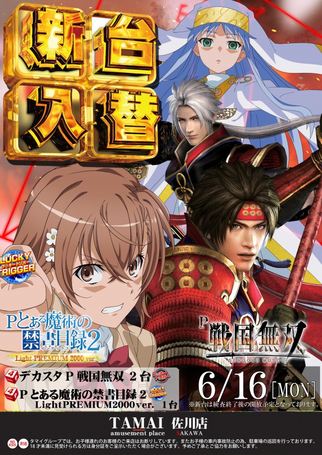 6/16(月)4P機【デカスタP戦国無双】2台導入予定‼