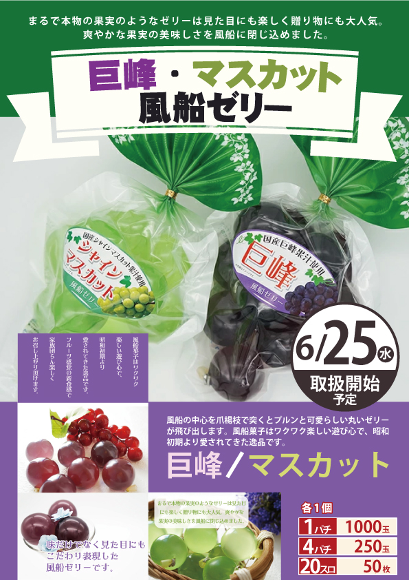 6/25スイーツ【巨峰、シャインマスカット風船ゼリー】 入荷