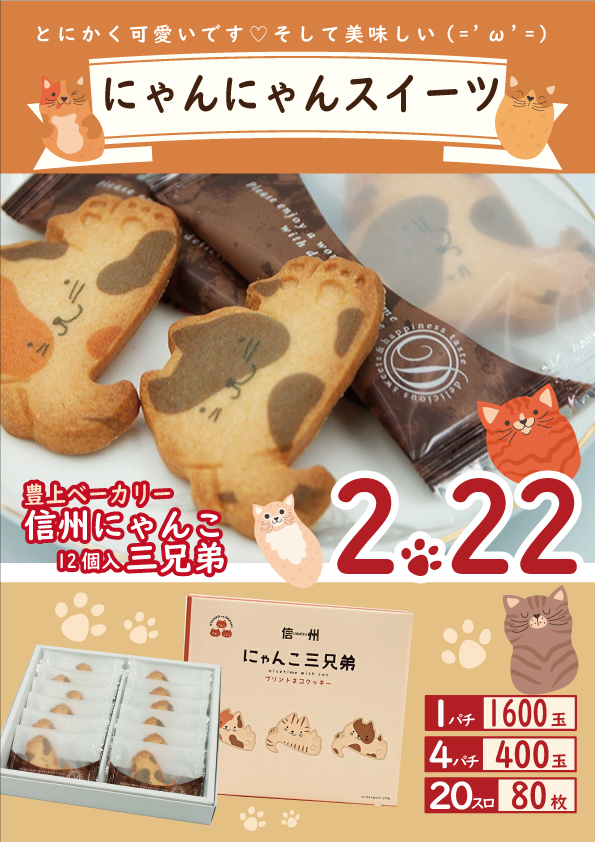 2/22(土)スイーツ『信州にゃんこ三兄弟 』入荷!!