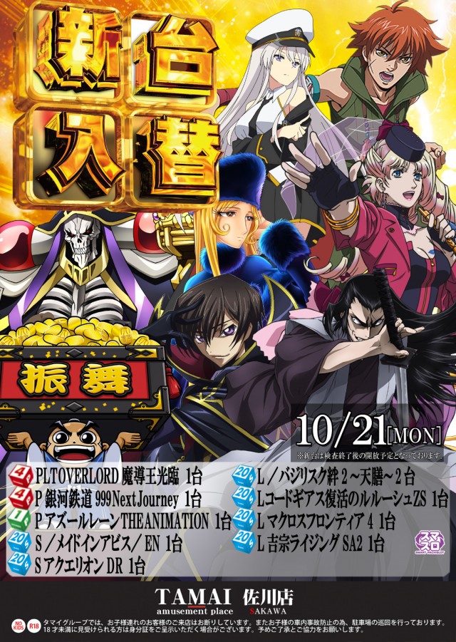 10/21(月)P機3機種、C機6機種 計10台 新台導入!