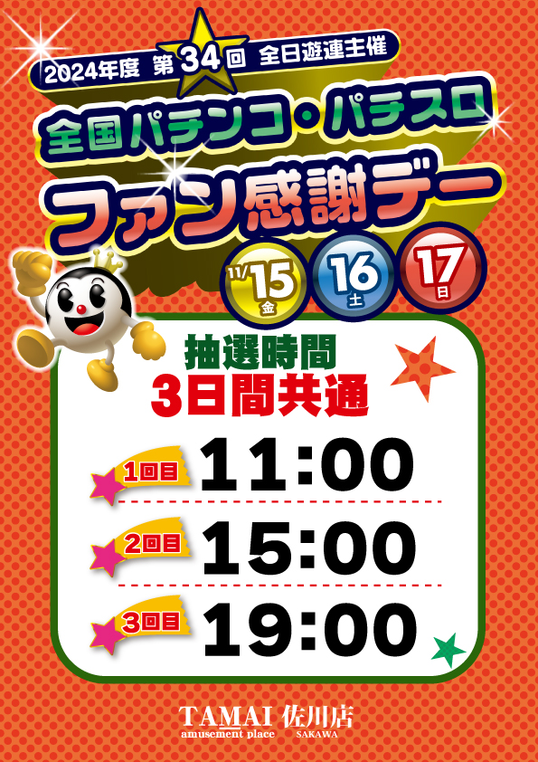 本日、ファン感謝デー2日目の抽選時間のお知らせです。🌝
