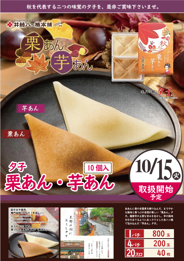 10/15(火)スイーツ今回は『夕子 栗あん・芋あん 』入荷