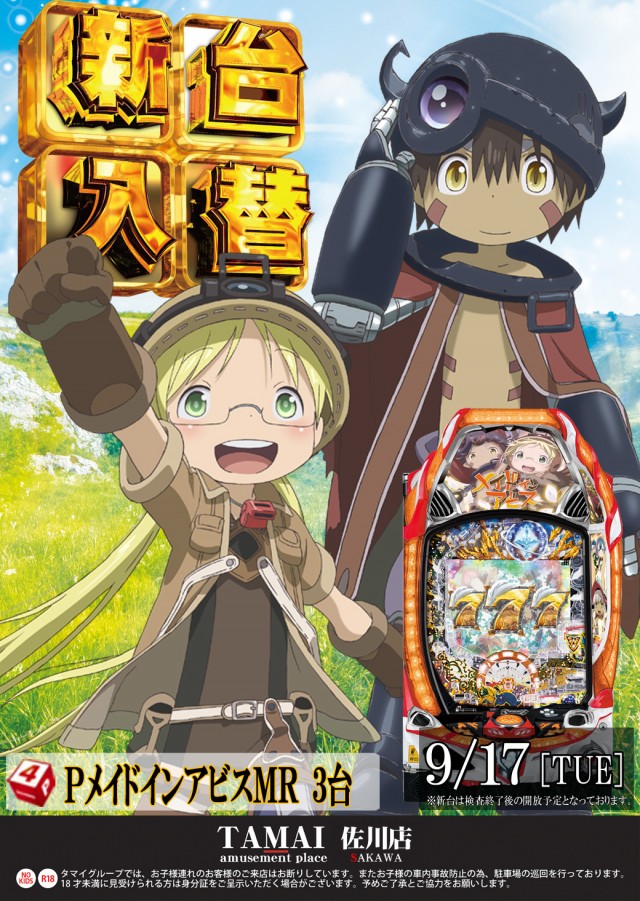 9/17(火)4P機3台【PメイドインアビスMR】新台導入!