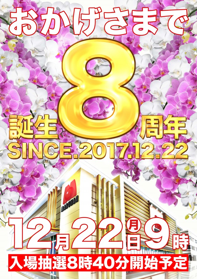 12月22日(月)☆感謝☆誕生8周年☆朝9時開店☆