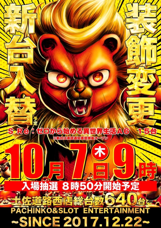 10/7(木)装飾変更+新台入替予定!ぜひお越しください!!