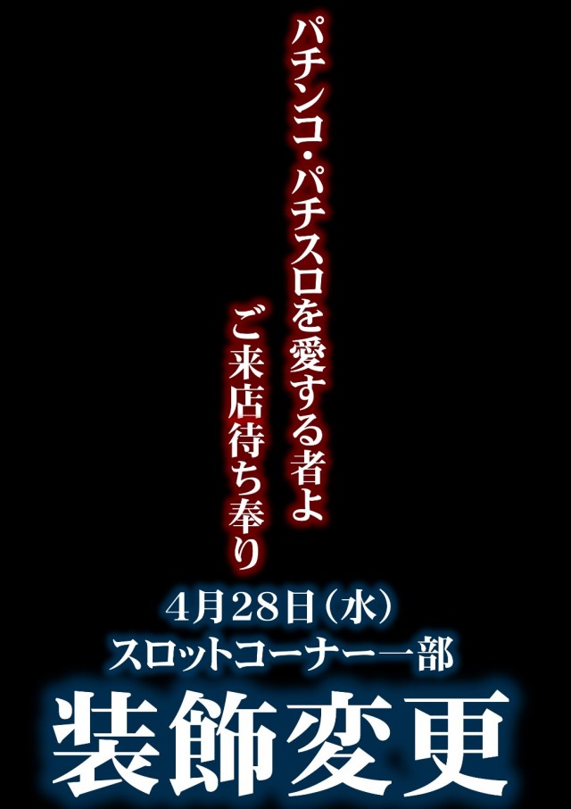 4/24(土) パチンコ・スロットレイアウト変更♪