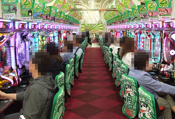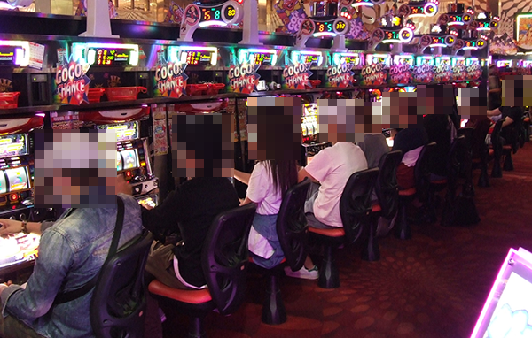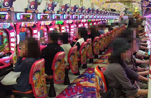 パチンコの低貸し玉コーナーもにぎやかな状況。