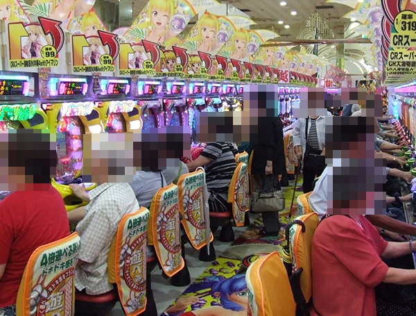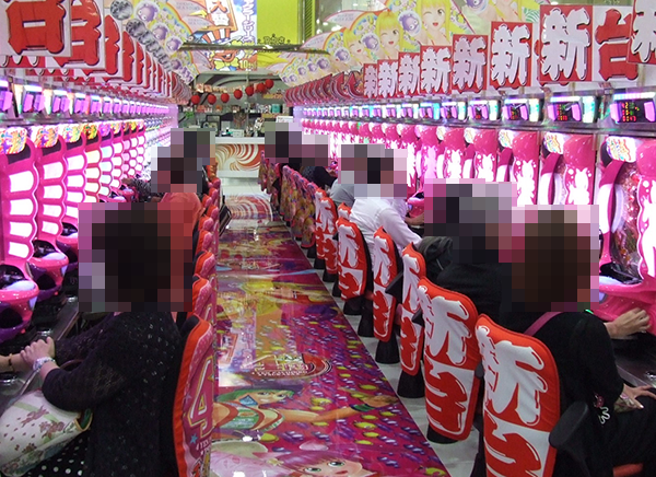 2円パチンコや1円パチンコもほぼ満席といった状況。