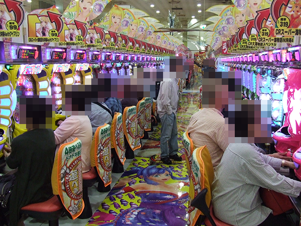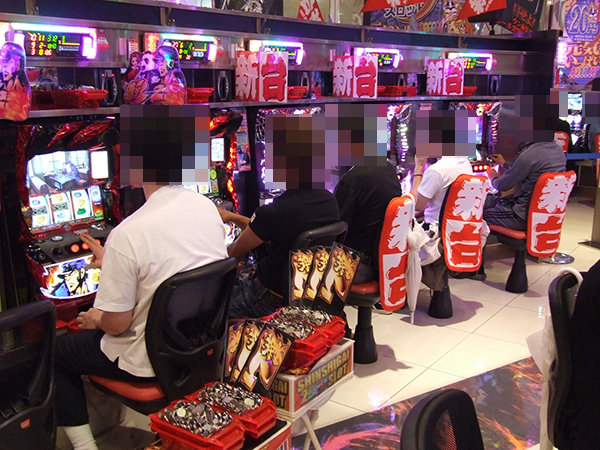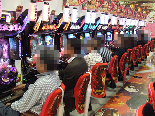 パチンコの低貸し玉コーナーも多くのプレイヤーでにぎわっていた。