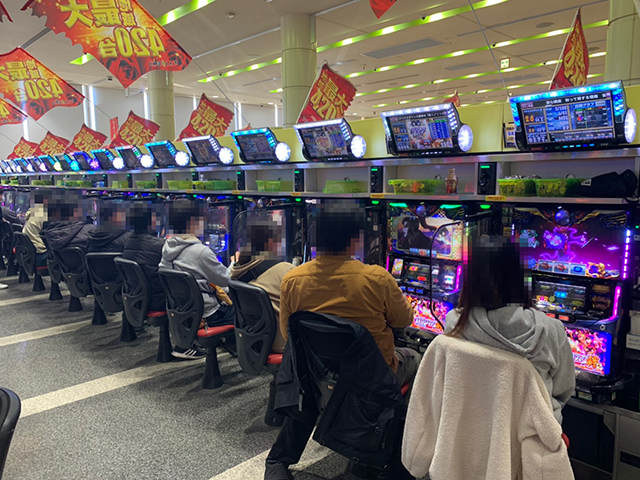 パチンコ520台、パチスロ420台、総台数940台を誇る大劇長嶺店。