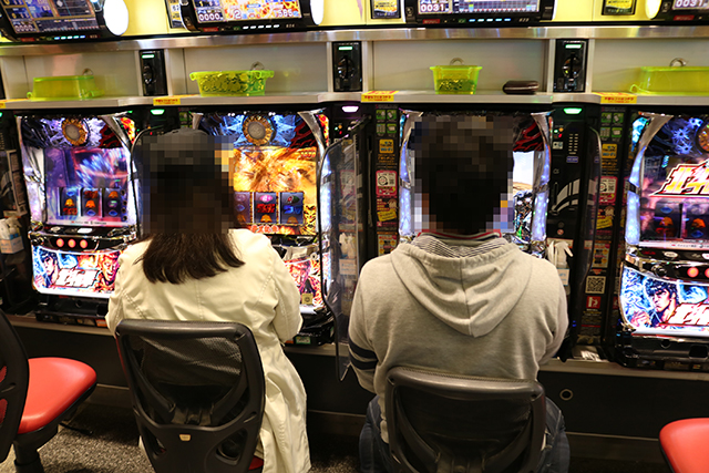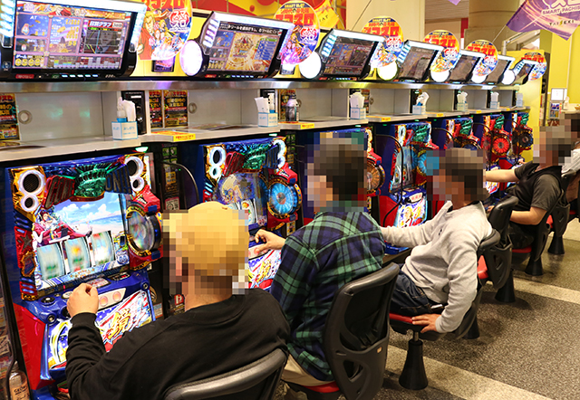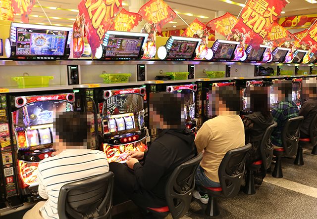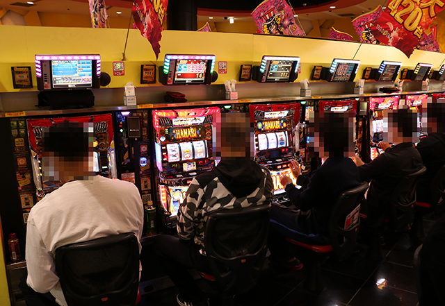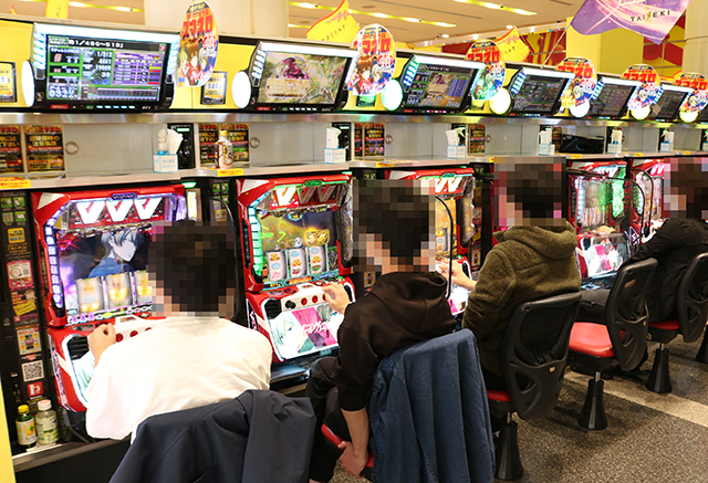 開店と同時に人気マシンが続々と埋まっていくパチスロコーナー。