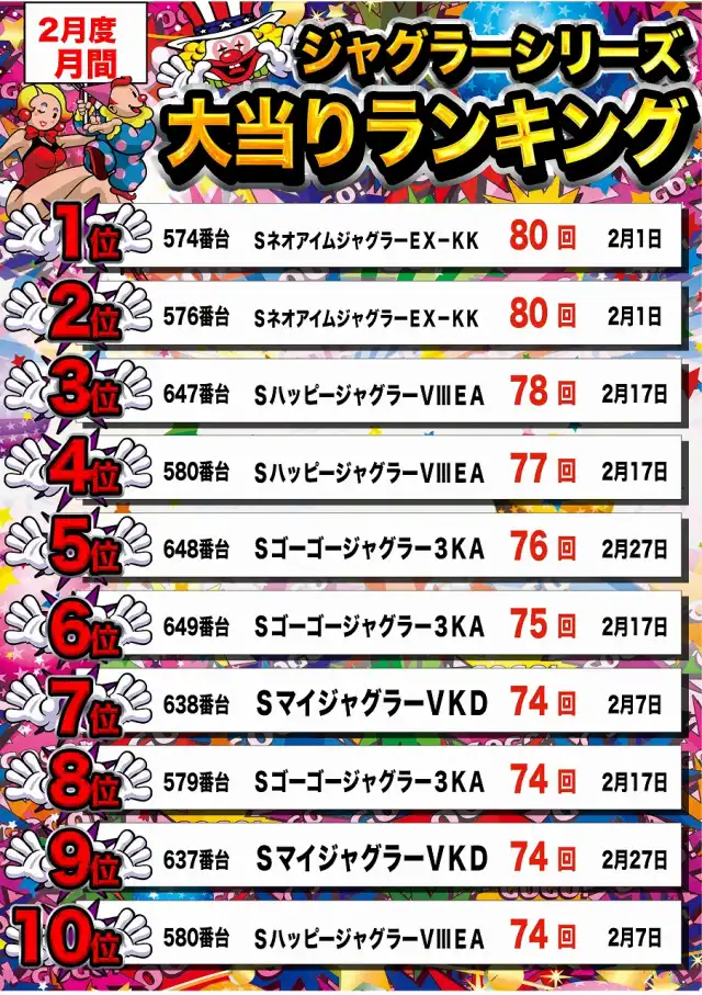 1位 2月7日(土) 2位 3月1日(日) 3位 2月17日(火)