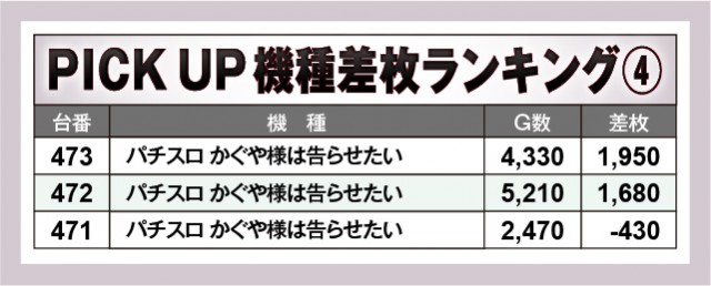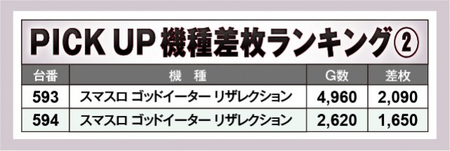 『スマスロモンキーターンV』『スマスロ ゴッドイーター リザレクション』は全台プラス差枚数を達成しており、優秀機種として名に恥じない活躍を披露。特に前者は7,000枚OVERという凄まじい熱気を放っており、ファンの意欲を搔き立てる存在となっていた。『Lパチスロ ダンベル何キロ持てる?』『パチスロ かぐや様は告らせたい』も負けじと奮起しており、ファンは手応えを感じていたはずだ。