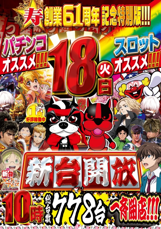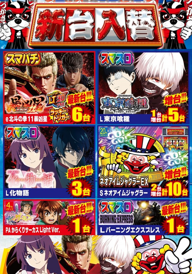 本日9日(火)「新台入替」一挙6機種14台導入!