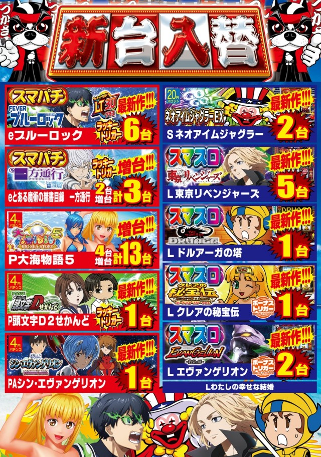 本日9日(火)「新台入替」一挙11機種26台導入!