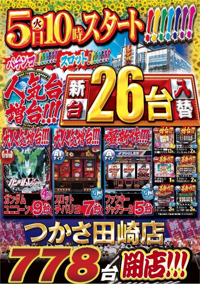 明日はつかさ田崎店へ!全778台朝10時開店❗❗❗