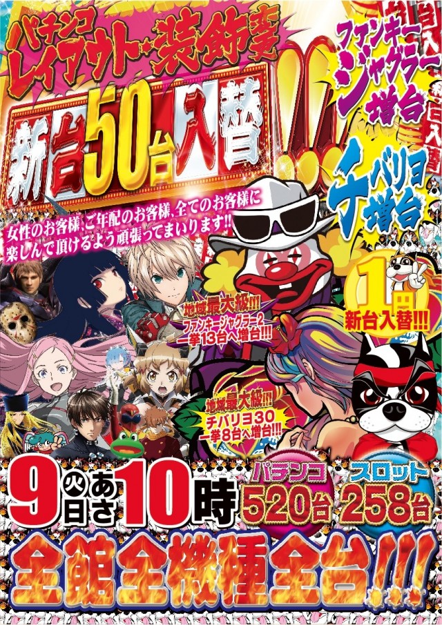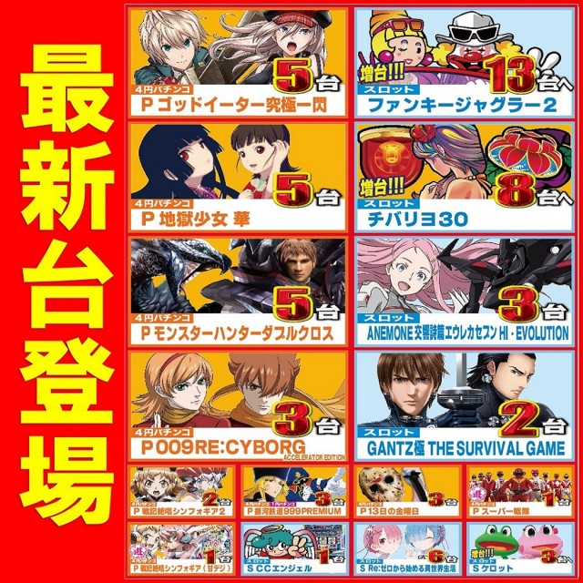 本日5日(火)「新台入替」11機種26台最新台導入!