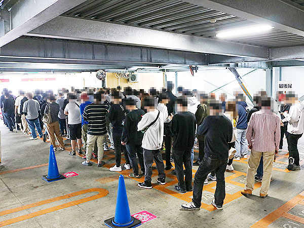 開店前から約120人ものプレイヤーが集合。会話を楽しみながら入店を待つ、実に和やかなシーンを目にしている。