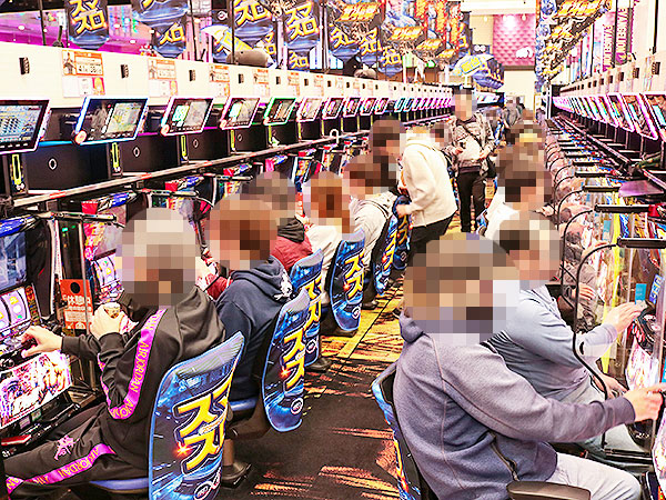 6.25円パチスロは機種を問わず好評を得ており、楽しそうにレバーを叩くプレイヤーが多かった。