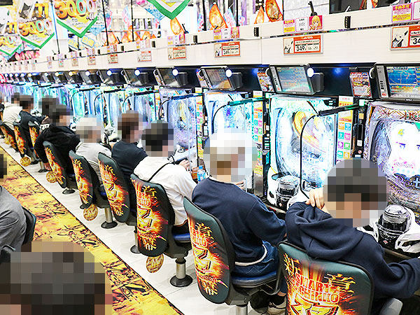 開店直後のプレイヤーの動きを追ってみると、1000円/46枚パチスロの「スマスロ北斗の拳」が人気で、すぐに満席となっていた。