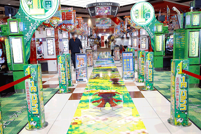 通路にたくさんの持ち玉がズラリと並ぶ美しい光景は、さながら熊本のエレクトリカル・パレード!