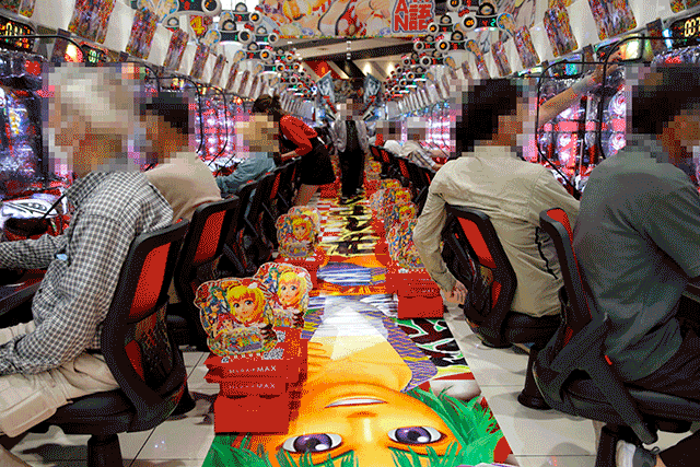 ↑写真は開店して間もない時間帯に撮ったものなので、まだ通路には持ち玉が出現していないが、時間の経過とともに持ち玉が続々と生まれていた。