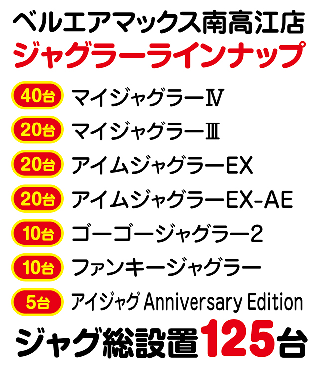 それもそのはず、このお店の『ジャグラー』ラインナップは、他店と比べて台数もポテンシャルも超強力!