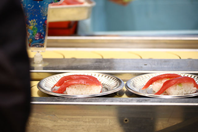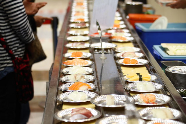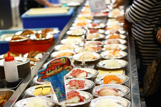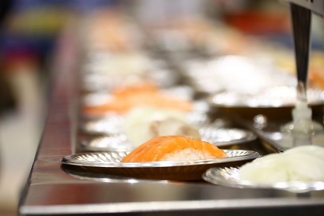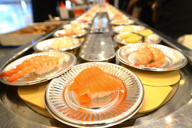 レーンには瞬く間に寿司の大名行列が現れる!