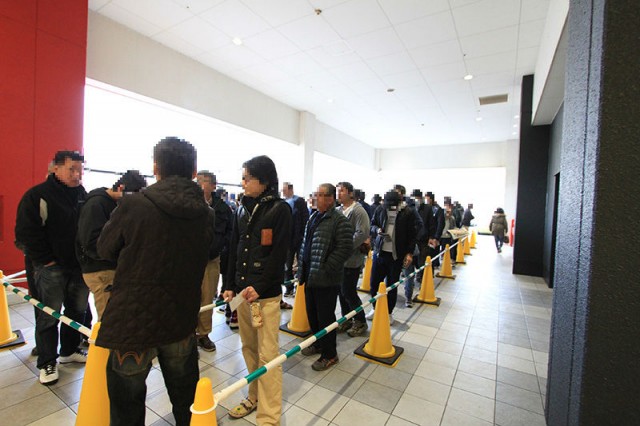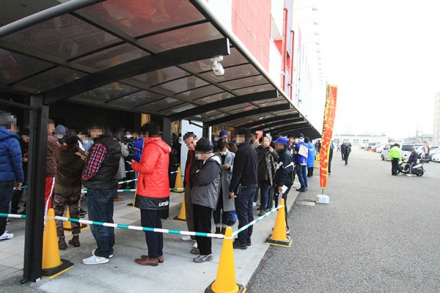 「ベルエアマックス南高江店」前のボリュームは、そのままファンの期待値を表しているのだ!もちろん、大型駐車場も、並ぶファンたちの車で埋め尽くされていた!!