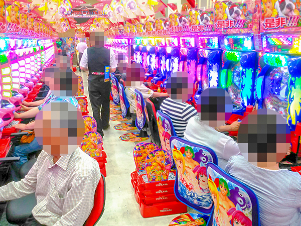 同店はパチンコ683台・パチスロ334台、合わせて1017台を設置する大型ホール。取材時も大勢のプレイヤーが集まっていた。