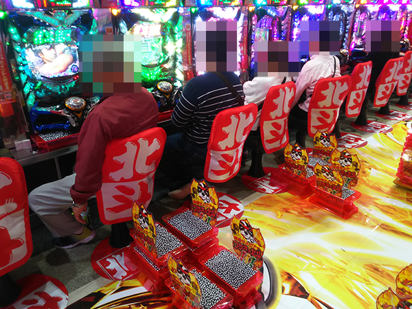 午後の4円パチンコにおいて、とくに人気を集めていたのが「CRぱちんこ冬のソナタ Remember」と「ぱちんこCR真・北斗無双 第2章」。パフォーマンスを披露する姿も多く、明るい雰囲気に包まれていた。