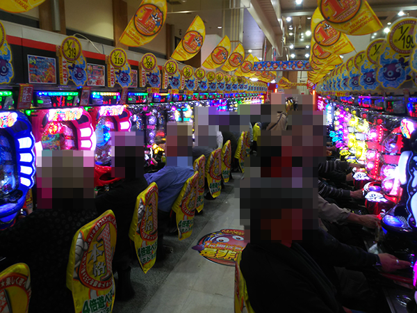 海物語シリーズを中心に、1円パチンコも活気に満ちていた。
