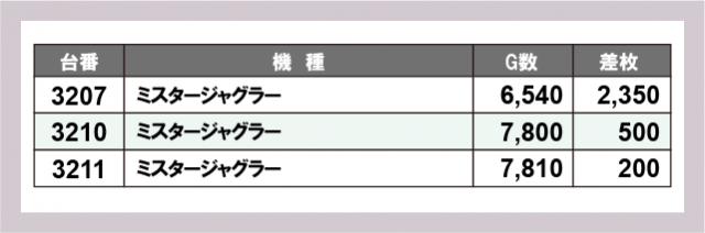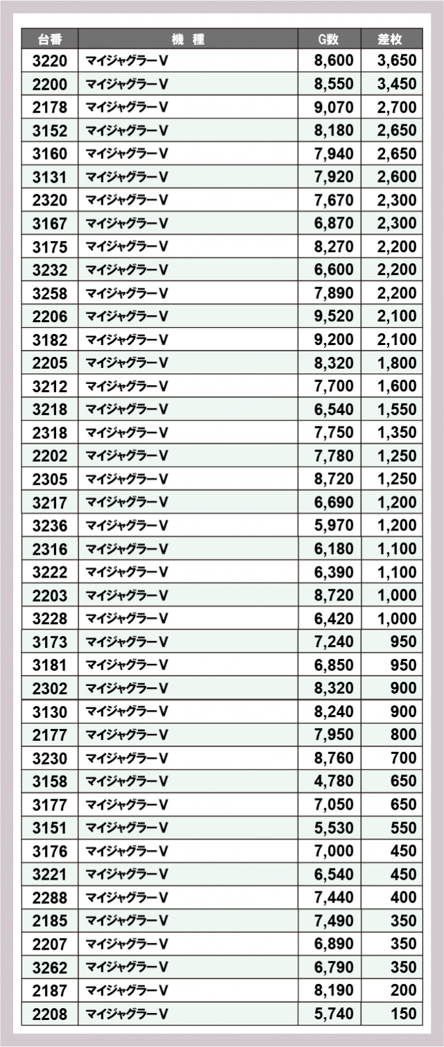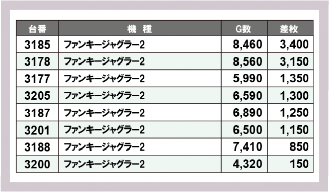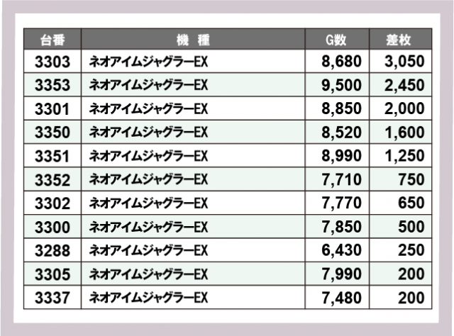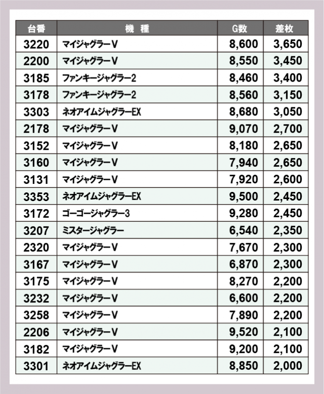 ジャグラー差枚ランキング