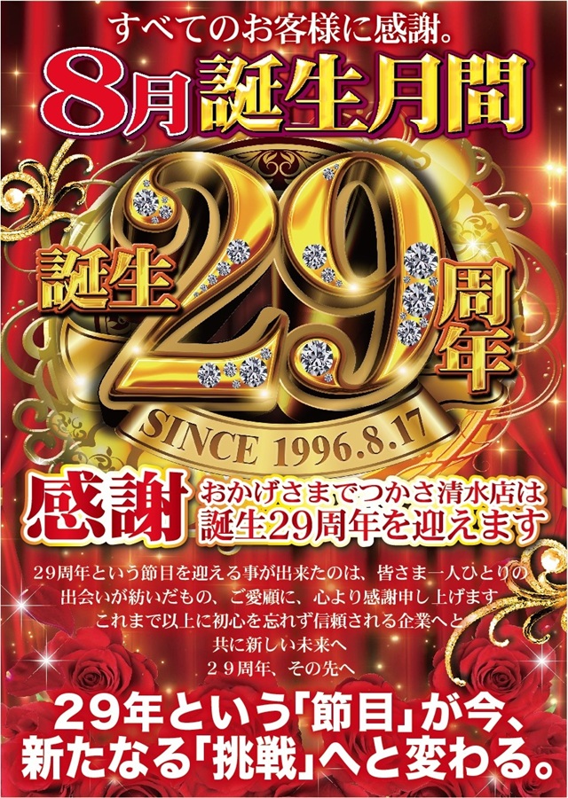 誕生29周年記念月間の1の日は清水店へ是非!!!
