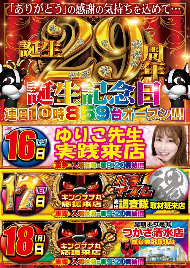 誕生29周年感謝!!!20.21日共闘は清水店へ是非!!!