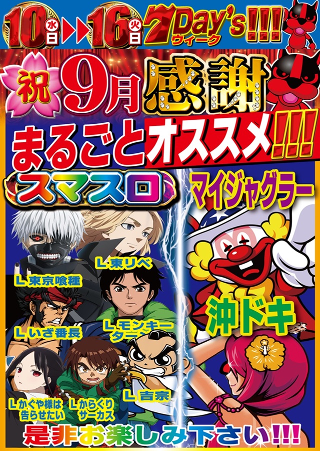 10月感謝!!!新台入替7の日は清水店へ是非!!!