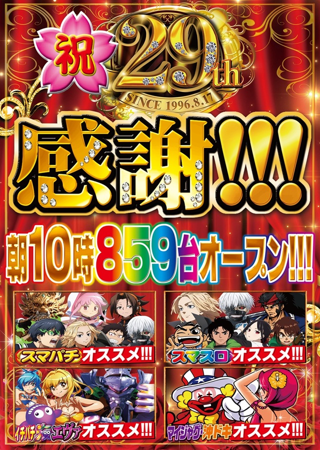 誕生29周年感謝!!!パチンコスロットガチ取材是非!!!