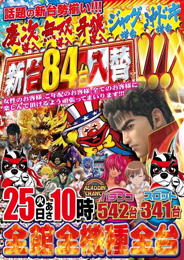 明日25日是非❗話題の新台勢揃いの新台入替❗朝10時オープン