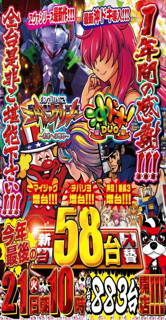 明日21日つかさ清水店❗今年最後の新台58台入替❗❗❗