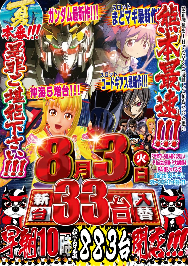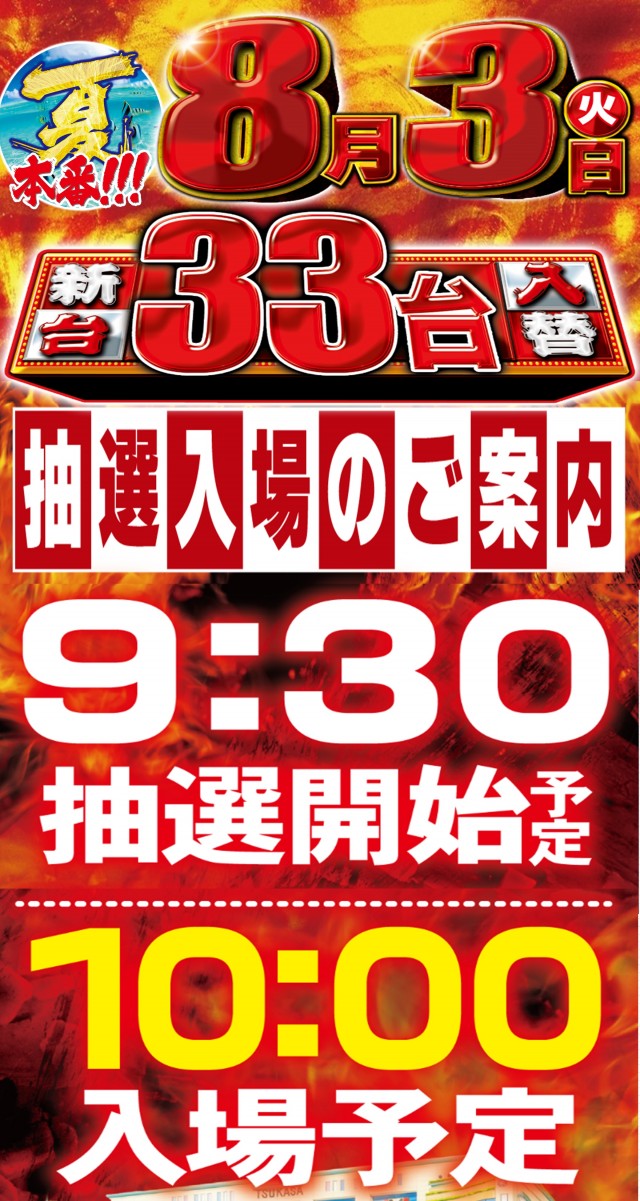 明日8月3日新台33台入替❗❗❗❗❗❗❗