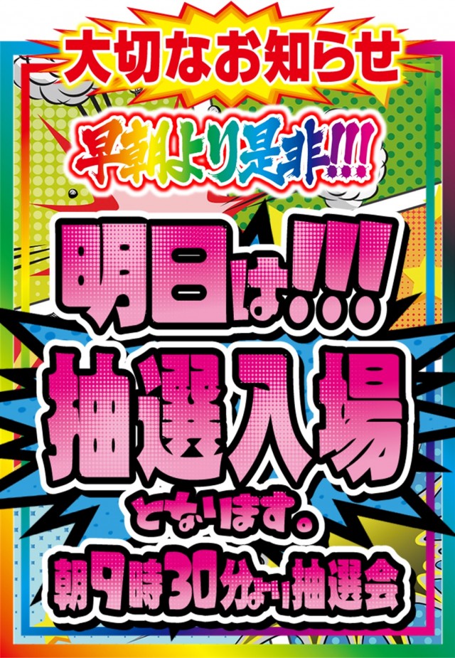 明日☆新台28台入替『ドキュン』開催10時オープン