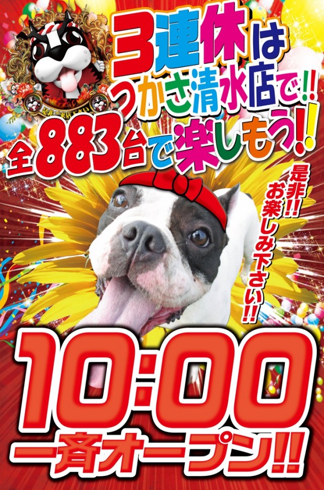 3連休の舞台は、つかさ清水店10時開店是非!