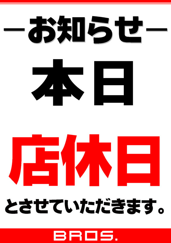 本日店休日☆明日7日新台入替10時OPEN☆