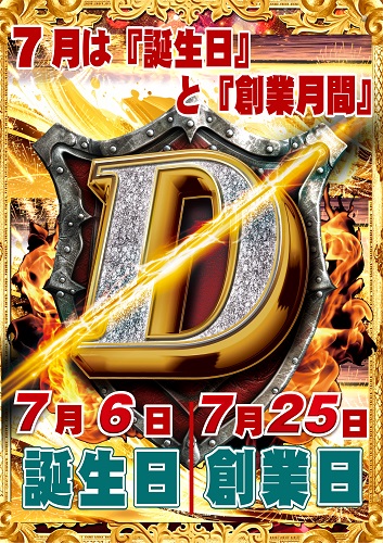 本日 7/25(金)ダイナム創業日 10:00OPEN予定
