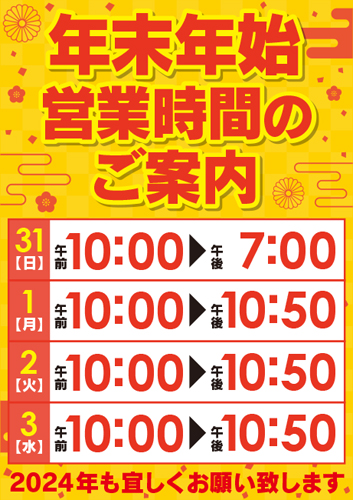 年末年始営業時間のご案内