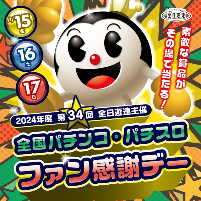 本日第34回全国パチンコ・パチスロファン感謝デー開催!!