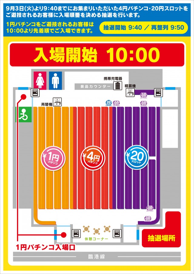 1円パチンコをご遊技希望の お客様は10時より先着順にて 入場できます。